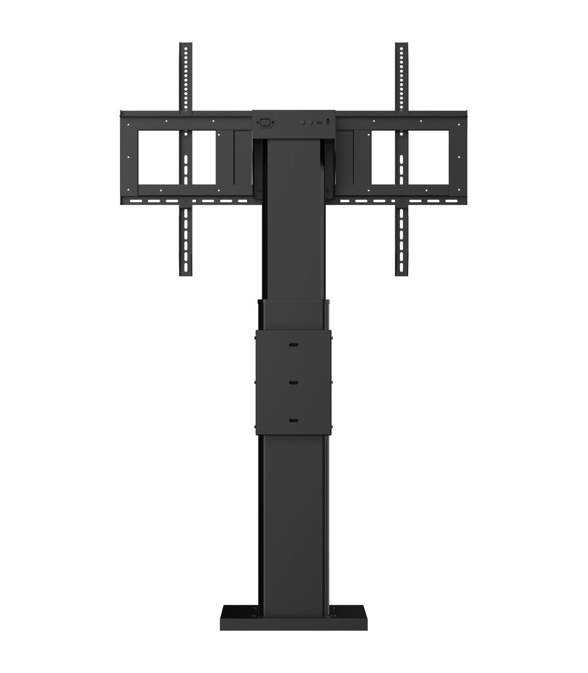 Este soporte elevador eléctrico fijo de una columna para suelo y pared es una solución perfecta para pantallas de 55"a 86". Es adecuado para pantallas de hasta VESA 800x600 mm y hasta 100 kg. Equipado con un montaje sencillo, basado en soportes de "tirar y soltar" y un mando a distancia con cable, es una solución perfecta para pantallas colocadas en aulas o salas de conferencias.